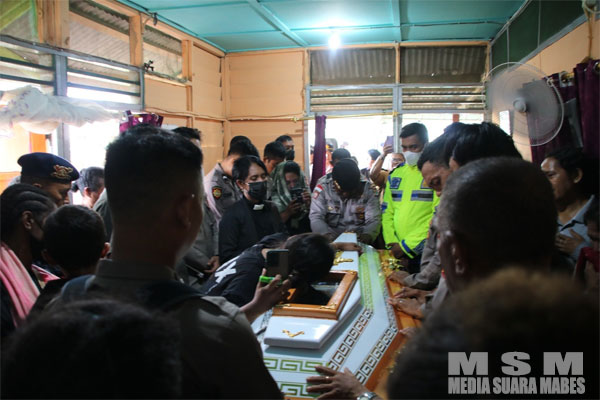 “Proses pengangkatan peti jenazah dilakukan oleh Bintara Polri angkatan 42 tahun 2018 yang ada di Polres Merauke. Menurut letting atau teman seangkatannya, almahrum merupakan sosok orang yang baik, disiplin, serta dekat dengan masyarakat,” ujar Wakapolres.