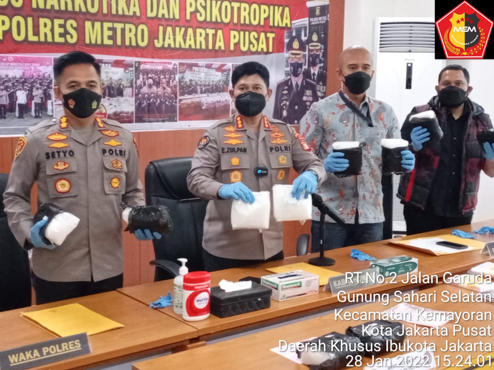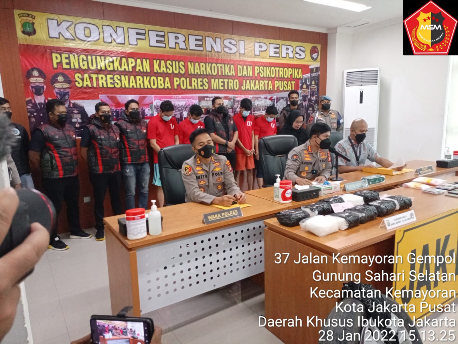 MediaSuaraMabes, JAKARTA – Polres Metro Jakarta Pusat menggelar jumpa pers terkait peredaran narkoba jenis sabu di jakarta, Jum’at, (28/01/2022).