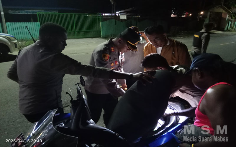 MediaSuaraMabes, Nabire Papua Tengah ~ Dalam upaya menjaga stabilitas keamanan dan ketertiban masyarakat (harkamtibmas), Polres Nabire melaksanakan kegiatan rutin yang ditingkatkan (KRYD) pada Selasa malam (15/4). Kegiatan yang berlangsung sejak pukul 19.30 WIT tersebut digelar di dua titik strategis, yakni Pasar Karang, Kelurahan Karang Tumaritis, serta di Perempatan Hotel Adamant, Jalan Trans Nabire–Enaro, Kelurahan Bumi Wonorejo.