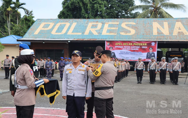 MediaSuaraMabes, Nabire – Bertempat di lapangan apel polres Nabire telah di laksanakan apel gelar pasukan operasi patuh cartenz 2024 yang di pimpin oleh Kapolres Nabire AKBP Wahyudi Satriyo Bintoro, S.H., S.I.K., M.Si, Senin 15 Juli 2024.