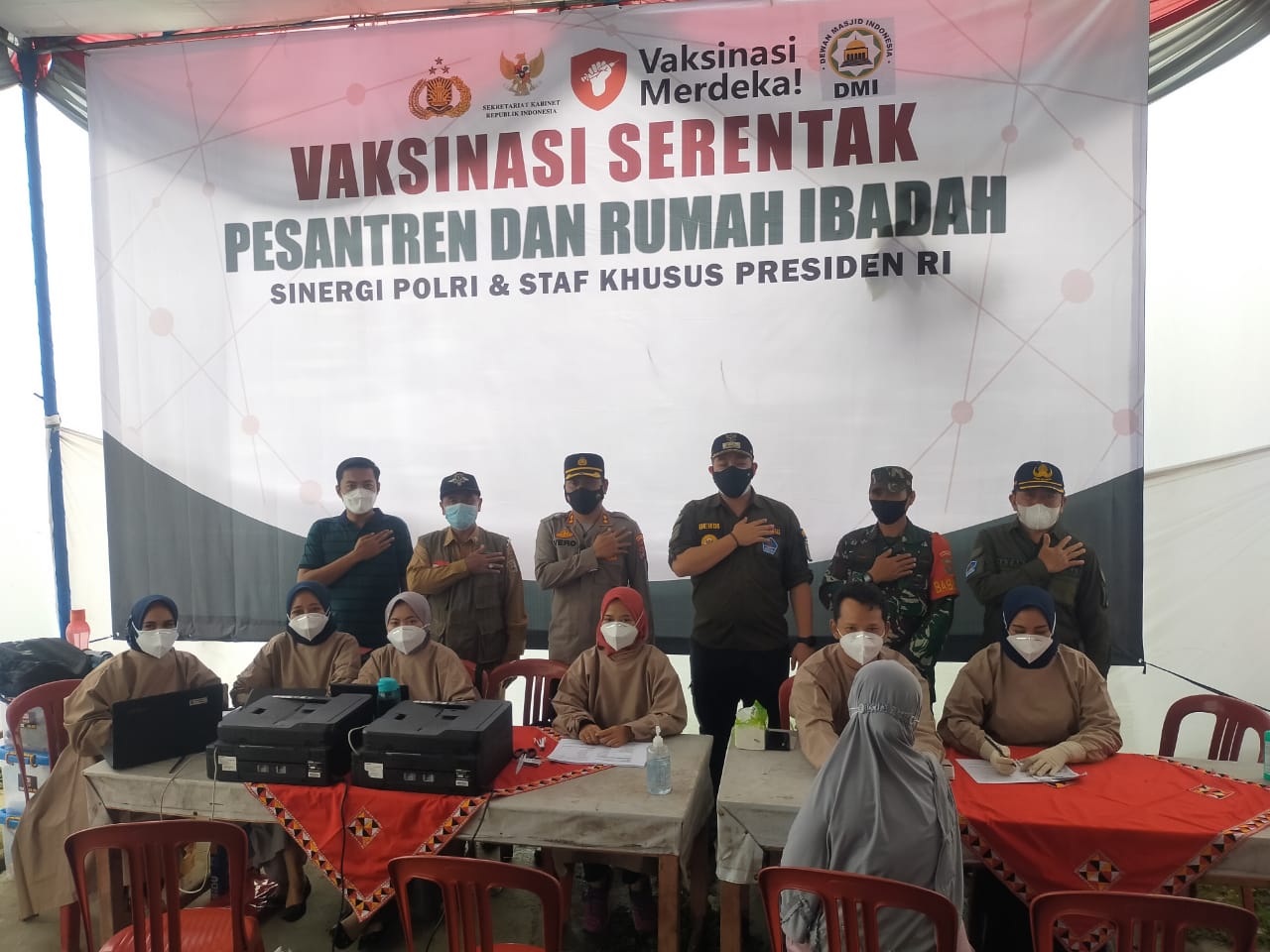 SuaraMabes, Pesawaran – Polres Pesawaran membuka Gerai Vaksinasi serentak Pesantren dan Rumah Ibadah (Masjid) serta warga sekitar di dua (2) lokasi yakni Masjid Nurul Iman, Dusun Induk, Desa Way Urang, Kecamatan Padang Cermin dan Pondok Pesantren Al-Hidayat, Desa Gerning, Kecamatan Tegineneng, Kabupaten Pesawaran, Selasa (07/09/21) Pukul 08.00 Wib.
