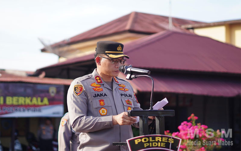 Kapolres Pidie AKBP Jaka Mulyana, SIK, MIK dalam amanatnya menekankan pentingnya sinergi dan kesiapsiagaan seluruh unsur pengamanan dalam menghadapi potensi gangguan kamtibmas, serta mengajak seluruh peserta apel untuk selalu mengedepankan profesionalisme dan humanisme dalam pelaksanaan tugas di lapangan.