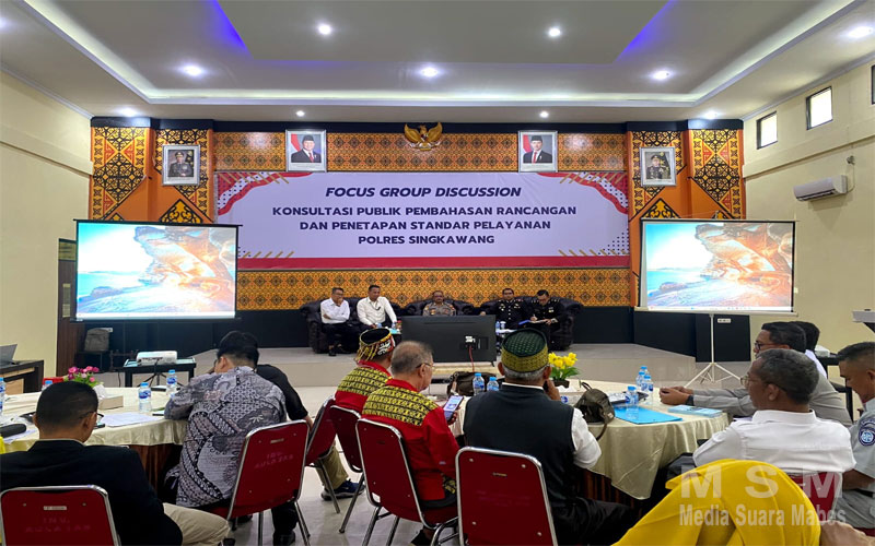 MediaSuaraMabes, Singkawang Kalbar – Polres Singkawang terus berupaya meningkatkan kualitas pelayanan kepada masyarakat. Hal ini diwujudkan dengan digelarnya Focus Group Discussion (FGD) Konsultasi Pembahasan Rancangan Standar Pelayanan, pada Rabu (1/10/2025) bertempat di Aula Sarja Arya Racana Polres Singkawang. Kegiatan tersebut melibatkan berbagai stakeholder dan perwakilan masyarakat pengguna layanan.