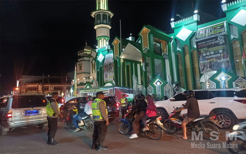 MediaSuaraMabes, Singkawang Kalbar – Polres Singkawang, Untuk memberikan rasa aman kepada warga masyarakat Polres Singkawang melaksanakan kegiatan pengamanan dalam rangka kegiatan Takbiq Akbar Penggalangan Donasi Kemanusiaan Untuk Rakyat Palestina yang diselenggarakan oleh yayasan Masjid Raya Singkawang Dengan penceramah Ustadz Dr. Hatoli S. Ay. MH, yang dilaksanakan Ba’da Sholat Isya bertempat di Mesjid Raya Kota Singkawang, Sabtu Malam ( 18/11/2023).
