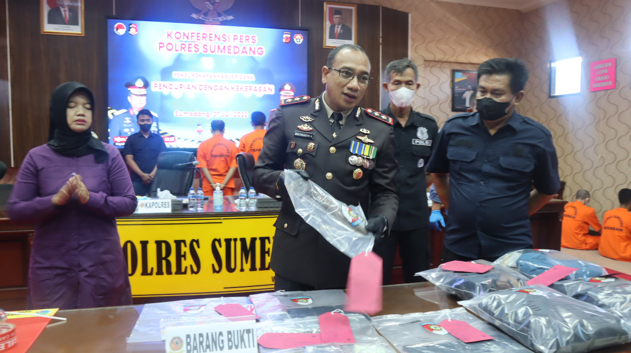MediaSuaraMabes, Sumedang – Kepolisian Resor Sumedang gelar Press Release pengungkapan kasus tindak pidana pencurian dengan kekerasan pada Kamis (07/07/2022), yang bertempat Aula Tribrata Mapolres Sumedang.