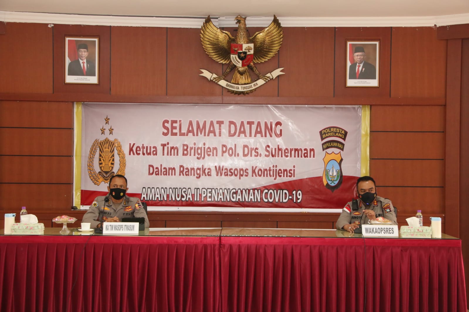 “Terimakasih Polresta Barelang telah menyambut kedatangan kami Tim Wasops Kontijensi dari Itwasum Mabes Polri, tujuan kami kesini yaitu, dalam rangka pengecekan operasi aman nusa penanganan Covid-19 di wilayah hukum Polresta Barelang. Kita berharap pada pelaksanaan wasops ini tidak terdapat penyimpangan dan terlaksana dengan lancar,” ujar Kombes Pol Arief Prapto Santoso.