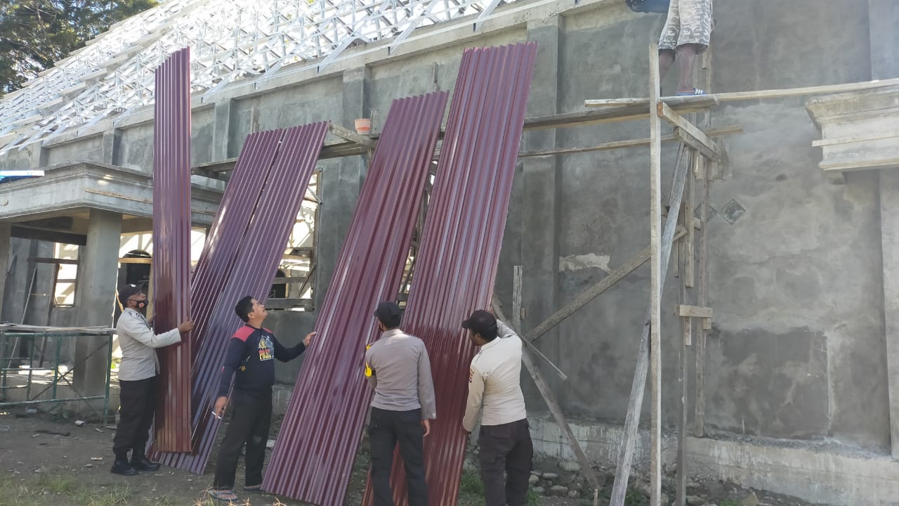 SuaraMabes, Bokondini – Dalam hal membantu pembangunan gereja GKI solafide distrik bokondini, personil polsek bokondini salurkan bantuan tenaga pengecetan serta pemasangan atap gereja. Senin, (19/07).