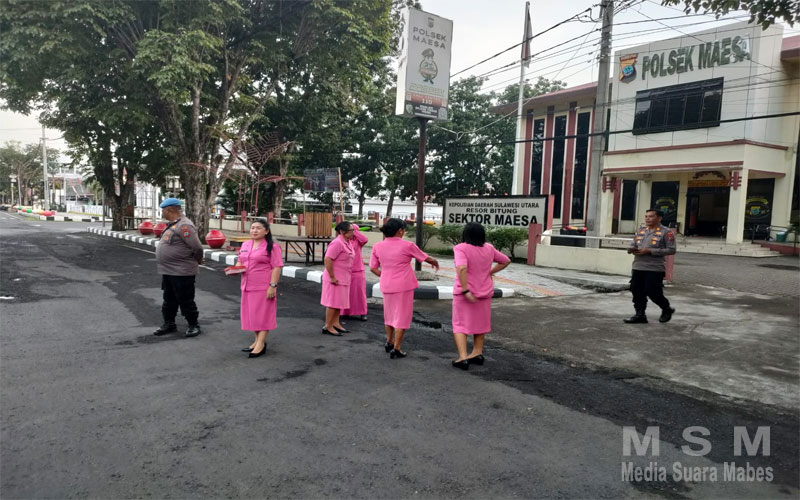 Hadir dalam kegiatan tersebut Pengurus Bhayangkari Ranting Maesa yg dipimpin Ny. NONI PADAMA-MANOPPO yang ikut bersama membagikan Takjil berisi Makanan ringan berupa kue dan Aqua sebanyak 100 dos kepada Masyarakat yang melintas di depan Mako Polsek Maesa baik itu Pengendara sepeda motor, Sopir maupun penumpang angkot yang nantinya diharapkan dapat dipergunakan oleh masyarakat ketika akan berbuka Puasa nantinya yang tidak sempat pulang ke rumah bersama keluarga.