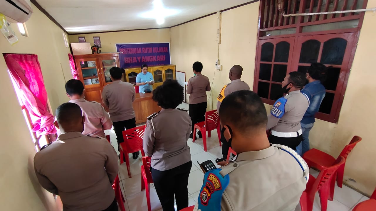 Kapolsek Muara Tami AKP Jubelina Wally, S.H., M.H mengatakan, pihaknya rutin melaksanakan pembinaan rohani dan mental agar personilnya terus mendekatkan diri kepada Sang Pencipta.