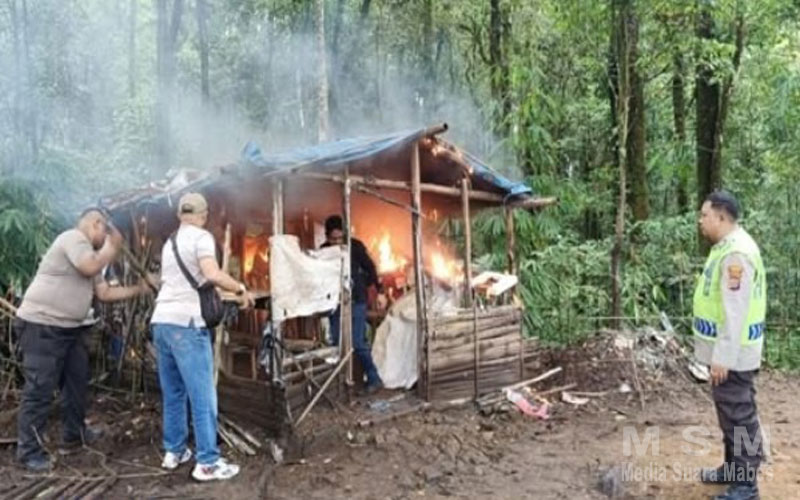 Tak ingin lokasi serupa kembali dimanfaatkan, petugas mengambil langkah tegas dengan membongkar dan membakar gubuk-gubuk tersebut.