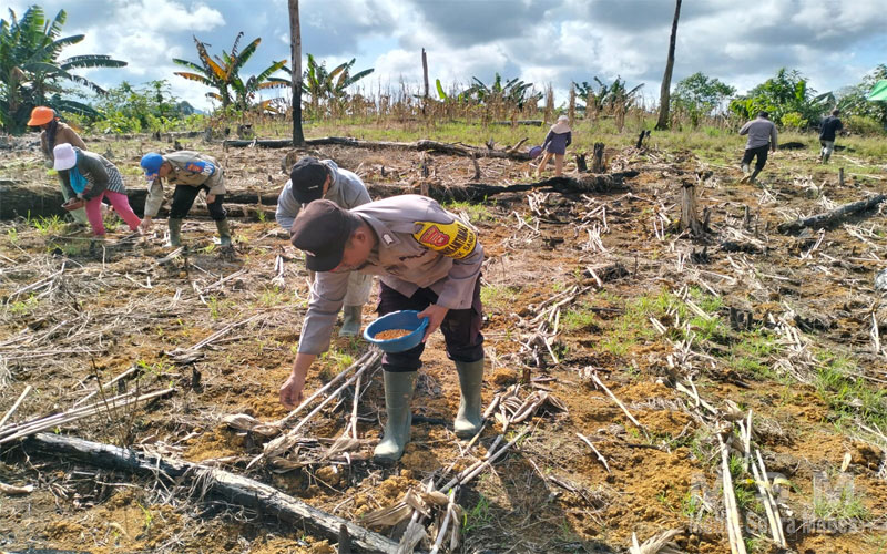 Polsek Sandai Polres Ketapang Laksanakan Penanaman Jagung Perdana Bersama Kelompok Tani Karya Bakti di Dusun Sumber Rejo