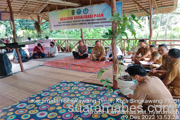 MediaSuaraMabes, Singkawang – Polsek Singkawang Timur,-Dalam upaya untuk terus menekan dan memberantas peredaran narkoba di kalangan generasi muda yang ada di wilayah hukum Polres Singkawang Polsek Singkawang Timur, Kapolsek Singkawang Timur Iptu Dwi Hariyanto Putro,S.H.di Wakili Waka Polsek Singkawang Timur Iptu Tri Suwarna menghadiri kegiatan Sosialisasi P4GN (Pencegahan dan Pemberantasan, Penyalahgunaan Narkoba) dan Pengukuhan Penggiat Relawan Anti Narkoba Kelurahan Besinar (bersih narkoba ), Senin (19/12/2022). Bertempat di Kediaman Ibu Mulia Jln Raya Singkawang-Bengkayang RT 13/03 kelurahan Nyarumkop Kec.Singkawang Timur.