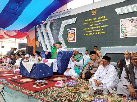 Pelaksanaan pengajian Akbar tersebut dihadiri oleh Habib Syech Rouhi Al Jailani yang berasal dari Negara Libanon, Sabtu (08/10/2022).