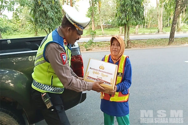 Paket bantuan tersebut diserahkan langsung kepada para petugas kebersihan yang bekerja di sepanjang Jalan Arteri Supadio, Kecamatan Sungai Raya, Kabupaten Kubu Raya.
