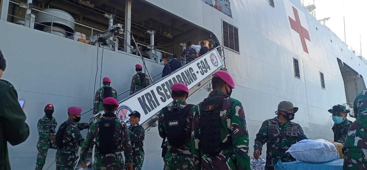 KRI Semarang 594 yang mengangkut bantuan dari Presiden Joko Widodo yang berangkat dari Jakarta sejak tanggal 8 April 2021 dan muat bantuan kemanusiaan di Surabaya tanggal 10 April 2021 membawa bantuan kemanusiaan untuk untuk korban banjir bandang di NTT tiba di Pelabuhan Lewoleba, Lembata. Bantuan yang tiba berupa sembako, pakaian, genset dan solar cell yang nantinya di serahkan kepada pengungsi di wilayah terdampak seperti Lembata Flores Timur dan Larantuka. KRI Semarang 594 juga akan difungsikan sebagai rumah sakit apung untuk memberikan layanan kesehatan bagi warga terutama korban banjir.