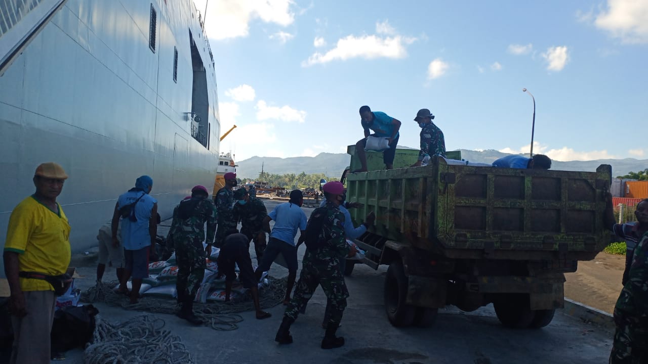 Prajurit Marinir TNI AL dari Yonmarhanlan VII Kupang yang tergabung dalam Satgas PRCPB kemudian melaksanakan Bongkar Muat Bantuan kemanusiaan yang berupa sembako serta beberapa perlengkapan, nantinya akan diserahkan kepada para pengungsi yang saat ini berada di pe ampungan di beberapa Posko Satgas bencana NTT, diharapkan bantuan ini dapat tersalurkan secara langsung kepada masyarakat yang menjadi korban bencana banjir bandang akibat badai tropis siklon seroja.