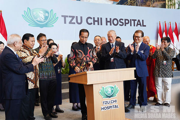 MediaSuaraMabes, Jakarta – Presiden Republik Indonesia, Joko Widodo meresmikan Rumah Sakit Tzu Chi Hospital yang berlokasi di Pantai Indah Kapuk, Penjaringan, Jakarta Utara pada 14 Juni 2023. Rumah sakit yang berada di bawah naungan Yayasan Buddha Tzu Chi Indonesia ini merupakan rumah sakit yang mengusung konsep High Tech (Berteknologi tinggi) dan High Touch (Sentuhan Humanis) dengan dihadirkannya pusat transplantasi sumsum tulang pertama di Indonesia.