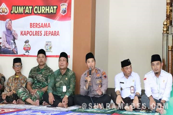 Kapolres Jepara menyampaikan bahwa kegiatan Jumat Curhat untuk menampung aspirasi dan bercurhat keluh kesah dari masyarakat yang langsung di dengarkan dan juga dicarikan solusinya.