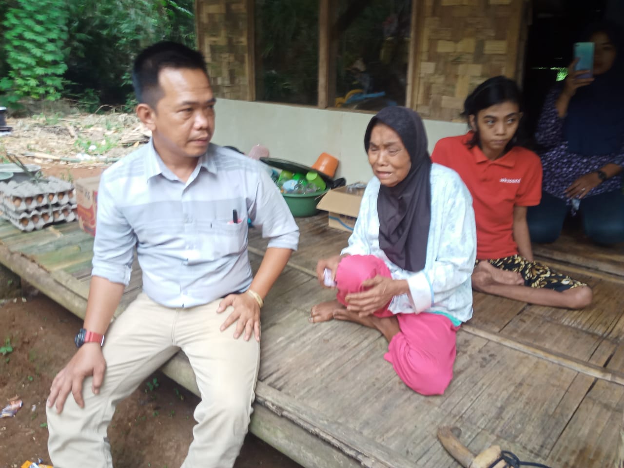 Rombongan PT. GMB ( GENERASI MUDA BERSAMA ) Tiba di lokasi dengan sebagian karyawannya, di dampingi Kanit Reskrim Polsek Simpenan, Bripka Hermawan. Menyambangi kediaman nenek jompo bernama ibu Eha, berusia 68 tahun yang Menderita sakit lumpuh sejak 2 tahun silam. Dan Imas 30 tahun putrinya juga mengalami kelumpuhan sejak lahir yang tinggal di Kampung Nyalindung RT. 005 RW. 001, Desa Cihaur Kecamatan Simpenan Kabupaten Sukabumi, Jawa Barat. Sabtu 21/08/2021.