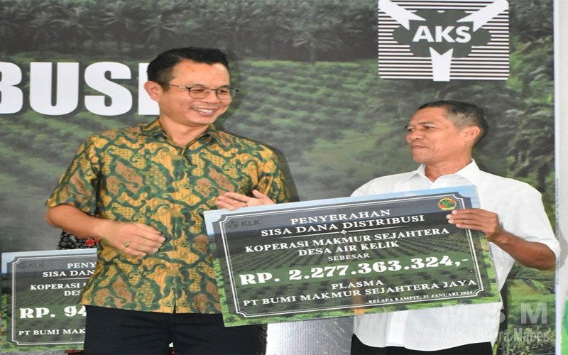 Total dana diserahkan oleh PT KLK mencapai Rp27.694.381.349. Dana tersebut diserahkan kepada 11 koperasi dan 2 kas Desa di bawah 4 perusahaan PT KLK, yakni PT SWP, PT Parit Sembada, PT Bumi Makmur Sejahtera Jaya dan PT Alam Karya Sejahtera.
