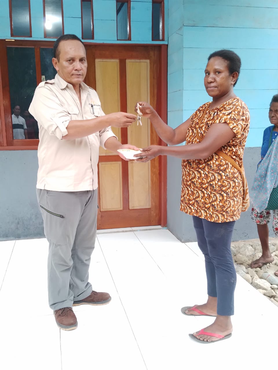 Penyerahan kunci rumah bagi warga masyarakat Tersebut, di serahkan langsung oleh Devisi keuangan PT. kristalin Eka Lestari wilayah nabire Adrian Lubis kepada kelurga Isak jina dan Resina Monei pada kamis, (28/09/2023).