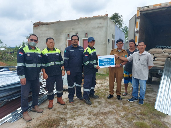 Maka, PT Timah Tbk langsung hadir memberikan bantuan kepada masyarakat yakni berupa atap atau seng sebanyak 100 keping, semen sebanyak 50 karung serta paku.