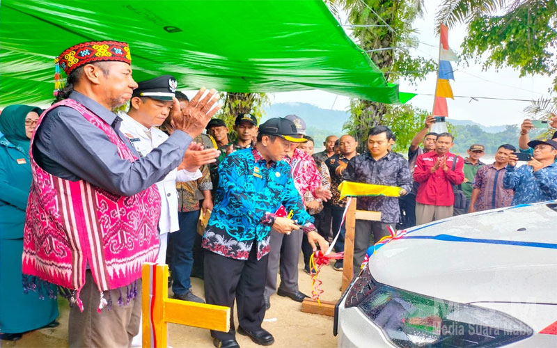 Bantuan ambulance diserahkan langsung Didi kepada Kepala Desa Sungai Alai, Junpin.