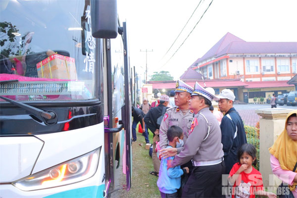 MediaSuaraMabes, Sintang – Puluhan peserta mudik gratis presisi Khatulistiwa 2023 dari program yang digelar beberapa waktu lalu oleh Polda Kalbar berkolaborasi dengan Pemprov Kalbar tiba di Kabupaten Sintang, Rabu (19/4).