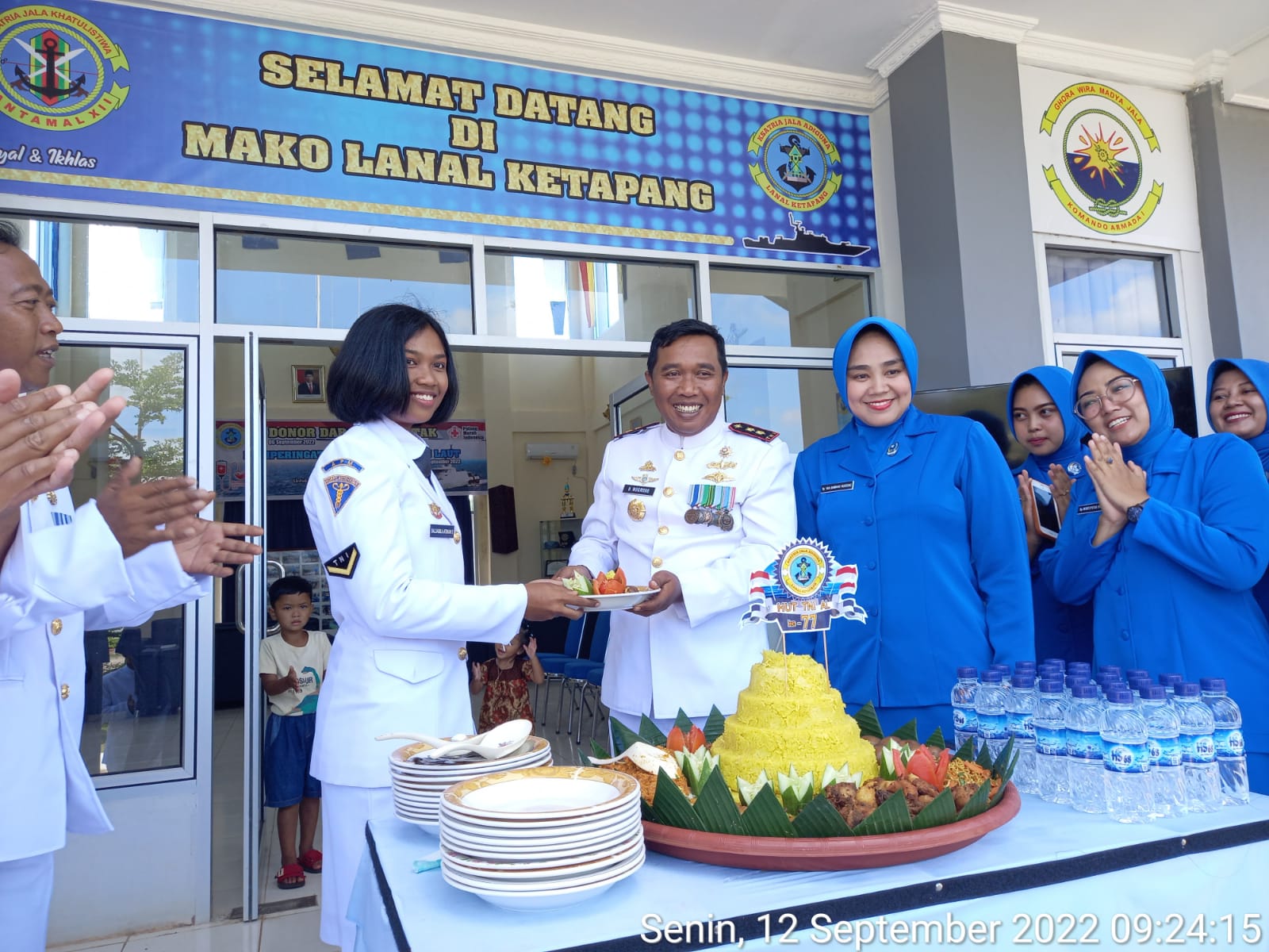 Usai pelaksanaan Upacara dilanjutkan dengan acara prosesi pemotongan tumpeng oleh Danlanal Ketapang beserta Ketua Cabang 4 Korcab XII DJA I, Ny. Yani Bambang Nugroho dan potongan pertama tumpeng diberikan kepada Kowal Lanal Ketapang, Serda Apm/W Salsabila Atikah Sari. Turut hadir dalam kegiatan tersebut Pengurus dan anggota Jalasenastri Cabang 4 Korcab XII DJA I.