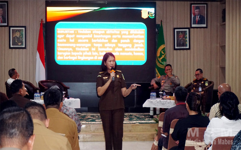 Kepala Bidang Penerangan dan Penyuluhan Hukum Dr. Martha Parulina Berliana, S.H., M.H. dalam materinya menjelaskan mengenai modus, dampak, proses, tata cara perekrutan, tujuan dan bentuk eksploitasi dari tindak pidana perdagangan orang. Selain itu, dijelaskan juga mengenai peran Kejaksaan RI terhadap tindak pidana perdagangan orang serta tindak pidana korupsi dalam ketenagakerjaan.