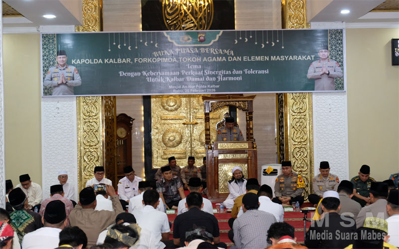 MediaSuaraMabes, Pontianak – Dalam rangka mempererat tali silaturahmi di bulan suci Ramadhan 1447 H, Kepolisian Daerah Kalimantan Barat (Polda Kalbar) menggelar acara buka puasa bersama forkopimda, awak media, tokoh agama dan elemen masyarakat bertempat di Masjid An-Nur Polda Kalbar, pada Rabu (25/2).