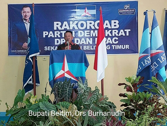 MediaSuaraMabes, Beltim – Dewan Pimpinan Cabang (DPC) Partai Demokrat Belitung Timur melaksanakan Rakorcab se-Kabupaten Belitung Timur (Kab.Beltim) di Aula Gedung Serba Guna A1 Puncak Bukit Samak Kecamatan Manggar Kabupaten Belitung Timur, sebagaimana dalam ketentuan AD/ART Partai Demokrat dan sebagai tindak lanjut hasil RAPIMNAS Partai Demokrat pada tanggal 14,15,16 September di Jakarta, guna memperkuat jaringan organisasi menuju Pemilu serentak Pilpres, Pilkada dan Pileg tahun 2024.