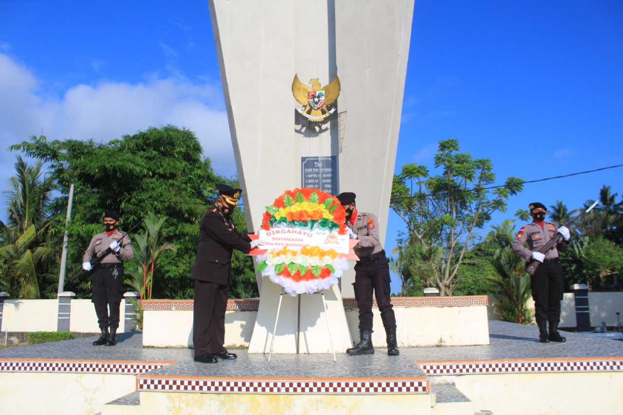 Dalam sambutannya, Kapolres Nunukan mengatakan, “Upacara Ziarah merupakan rangkaian Peringatan Hari Bhayangkara ke 75 ini, merupakan bentuk penghormatan tertinggi kepada para arwah pahlawan yang mendahului kita,”