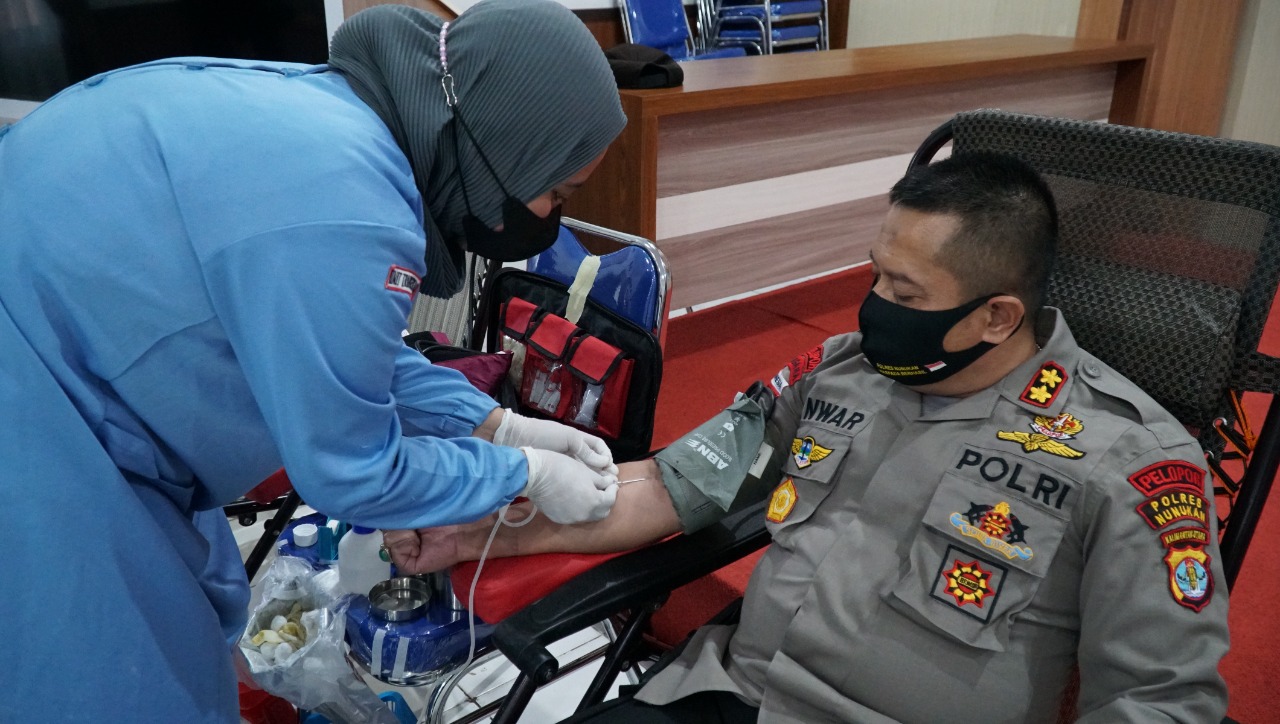 Petugas PMI Kab.Nunukan dalam acara donor darah rangkaian HUT Bhayangkara Ke -75 ini mengumpulkan 50 kantong darah, terdiri dari Golongan Darah A 10 kantong, B 16 kantong, O 22 kantong dan darah AB 2 kantong (Syafaruddin/Biro Nunukan).