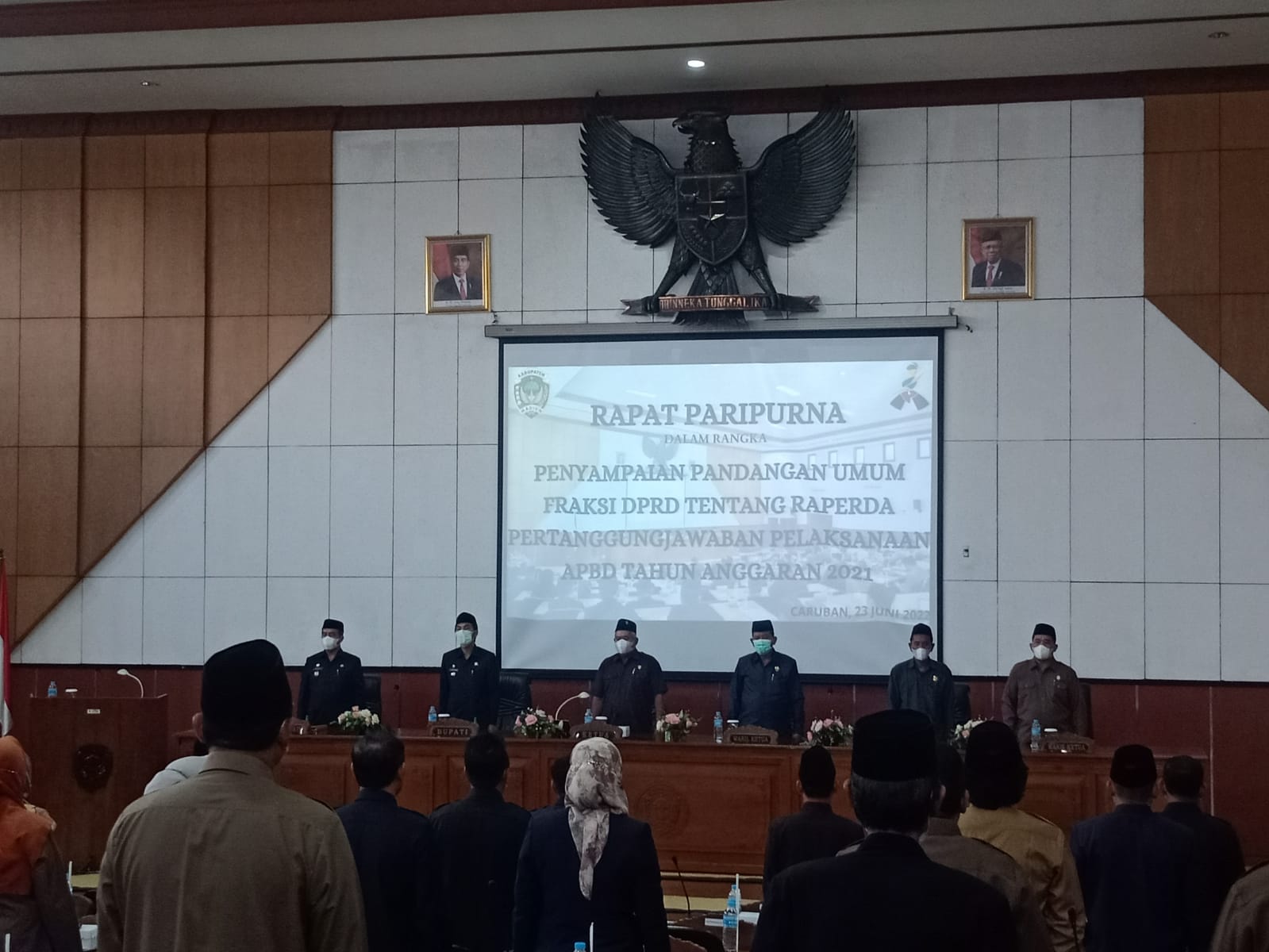 MediaSuaraMabes, Madiun – Rapat Paripurna dengan agenda penyampaian pandangan umum fraksi DPRD tentang Raperda pertanggungjawaban pelaksanaan APBD tahun anggaran 2021 digelar di gedung DPRD Kabupaten Madiun, Kamis (23/6/2022).