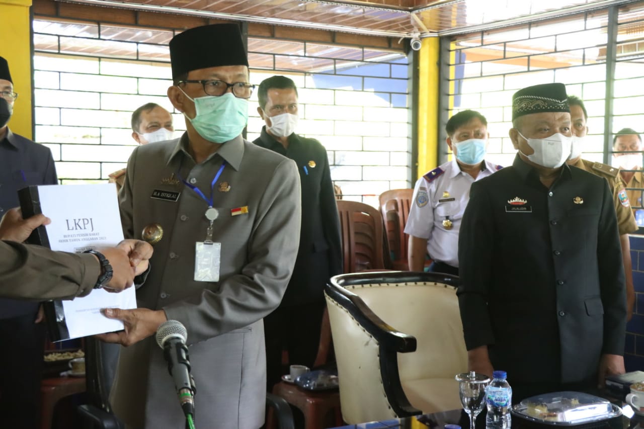 Dalam sambutannya Bupati Pesisir Barat mengatakan bahwa LKPJ ini disusun berdasarkan pada RPJMD Kabupaten Pesisir Barat tahun 2016-2021, RKPD tahun 2021 dan perubahan RKPD tahun 2021 serta APBD tahun anggaran 2021 dan perubahan APBD tahun anggaran 2021 berikut penjabarannya. Tema pembangunan daerah pada tahun 2021 adalah “Percepatan pembangunan infrastruktur dan ekonomi masyarakat untuk meningkatkan kualitas sumber daya manusia”.
