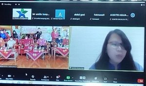 Perwakilan Kepala Perpustakaan Nasional RI Karolin, Perwakilan Kepala Dinas Perpustakaan Propinsi Lampung Melalui Zoom Meeting.