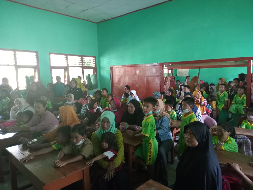 Di sela sela acara Bunda Dewi juga meninjau langsung kegiatan vaksinasi di SDN 1 Kiluan Negeri.(A Sundari).