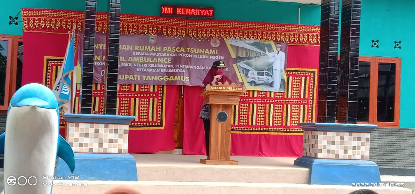 Penyerahan rumah pasca tsunami di berikan kepada masyarakat Kiluan negeri yang terdampak tsunami berapa tahun yang lalu.