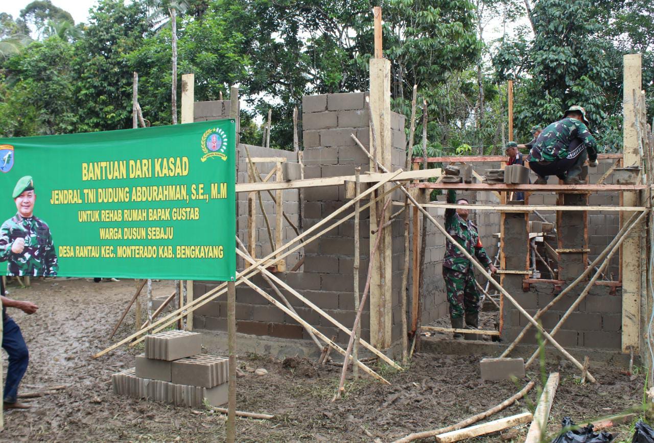 MediaSuaraMabes, Bengkayang – Hari ke enam progres pengerjaan rehab rumah tidak layak huni (RTLH) bantuan Kepala Staf Angkatan Darat (KASAD)Jendral TNI Dudung Abdurachman S.E,M.M yang dilaksanakan Kodim 1202/Skw, terus digenjot, milik bapak Gustab di RT 004 RW 002,Dusun Sibaju Desa Rantau Kec.Monterado Kabupaten Bengkayang.