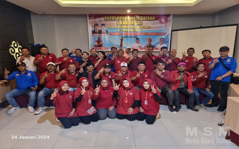 MediaSuaraMabes, Pekanbaru – Badan Relawan Prabowo (BRP) Riau mengadakan Rapat Koordinasi Daerah (Rakorda) yang berlangsung di Ruang Rapat Tjokro Hotel Pekanbaru. Acara ini dihadiri oleh pengurus inti Dewan Pimpinan Cabang (DPC) BRP se-Riau dan dibuka oleh Ketua BRP DPD Riau, Bapak Faizal Malik, bersama Sekjen BRP Riau, Bapak Herwin MT Sagala, dan Bendahara Umum BRP Riau, Bapak Jesias Kodong.