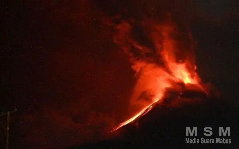 Gunung Api Lewotobi Laki-laki di Kabupaten Flores Timur, Nusa Tenggara Timur, mengalami erupsi pada Minggu, 3 November 2024 pukul 23:57 WITA.