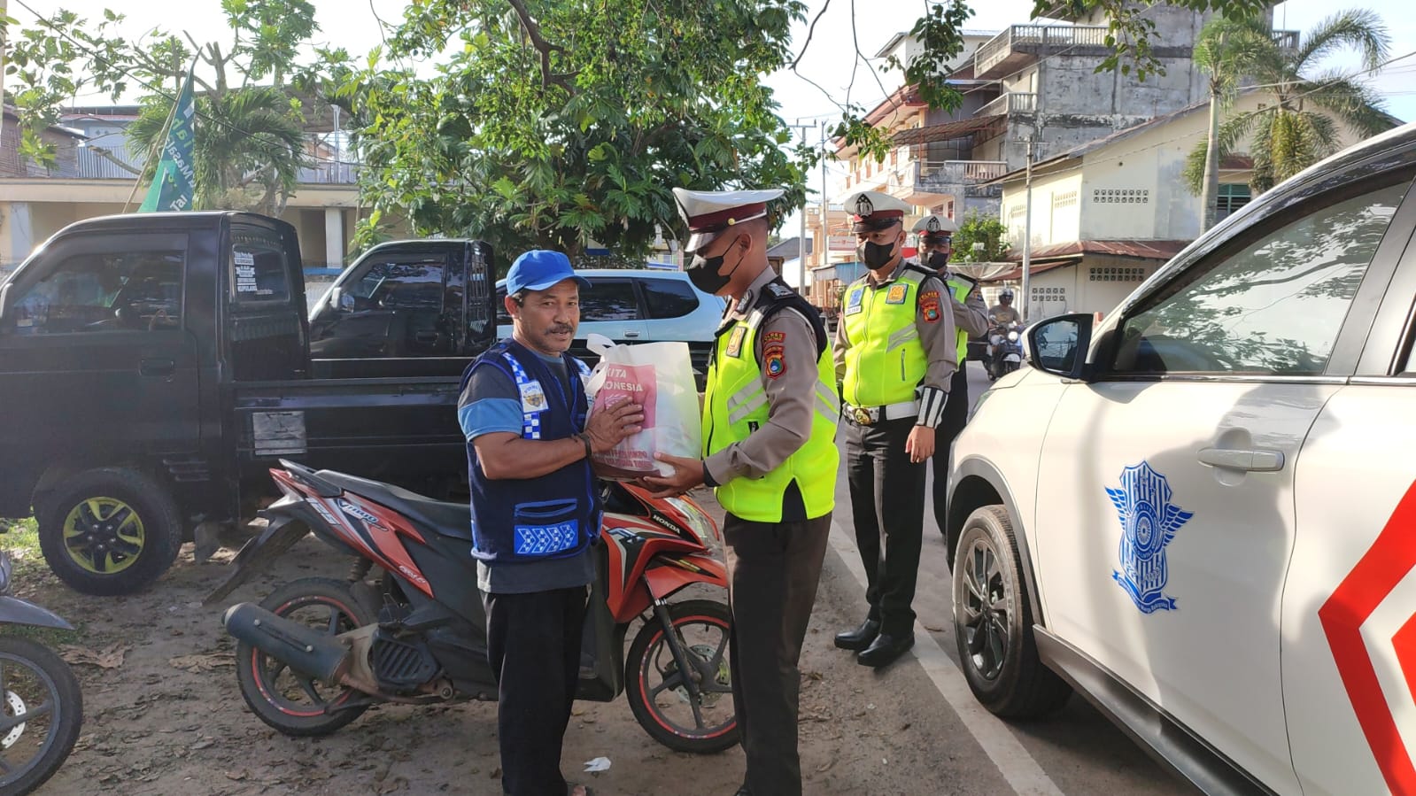 Penyaluran Bantuan sosial berupa paket sembako ini diberikan dengan sasaran diantaranya sopir truk dan Bus, ojek serta nelayan perahu kater.