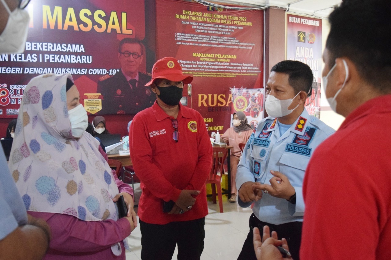 “Vaksinasi ini merupakan salah satu upaya Rutan Pekanbaru untuk mendukung dan menyukseskan program Pemerintah melalui vaksinasi, serta memberikan kemudahan bagi WBP sebagai salah satu syarat untuk dapat menikmati layanan kunjungan tatap muka di Rutan Pekanbaru,” ujar Lukman sembari memantau pelaksanaan vaksinasi.