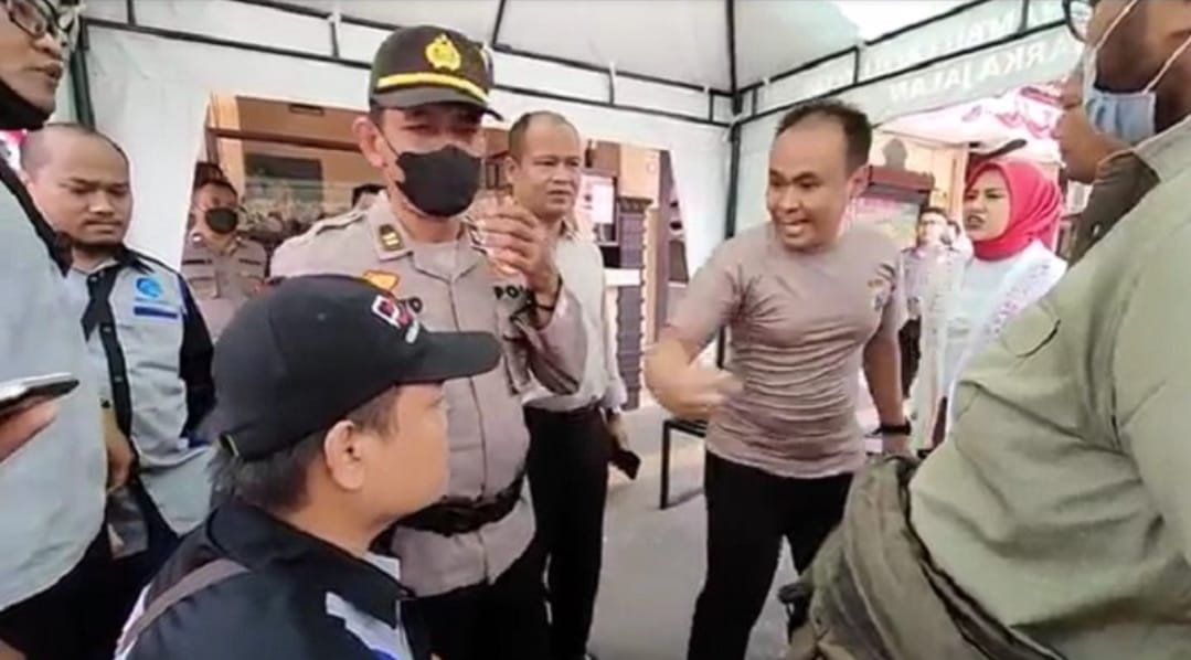 Pada saat bersitegang itu kasat lantas sampai mencopot seragam dinasnya entah apa maksudnya. Beberapa polisi yang lain nampak menenangkan rekannya yang saat itu sedang emosi.