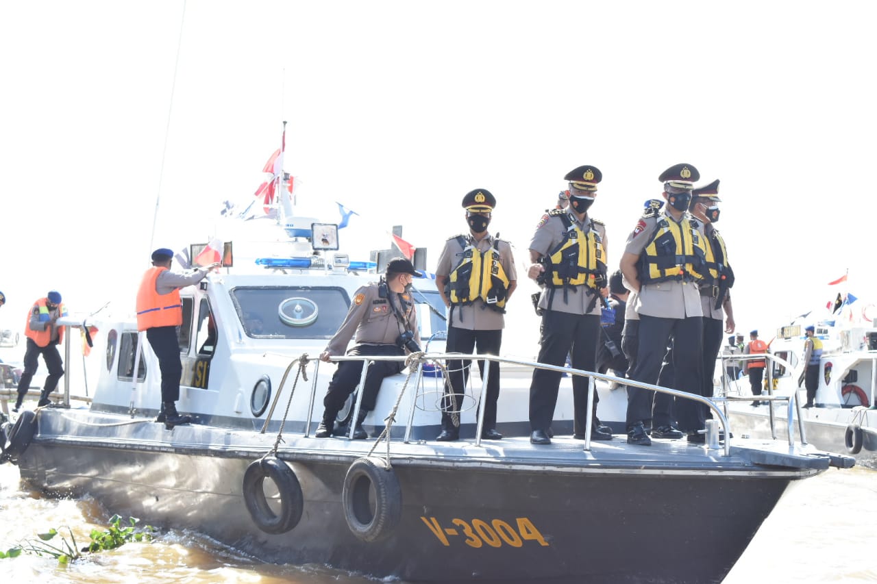 SuaraMabes, Palembang – Kapolda Sumatera Selatan (Sumsel ) Irjen Pol Prof Dr Eko Indra Heri S MM didampingi Wakapolda Sumsel Brigjen Pol Rudi Setiawan Sik SH MH, memimpin ziarah Rombongan di Taman Makam Pahlawan (TMP) Ksatria Ksetra Siguntang dan Tabur Bunga diperairan Sungai Musi Palembang Selasa Pagi (29/06/2021)