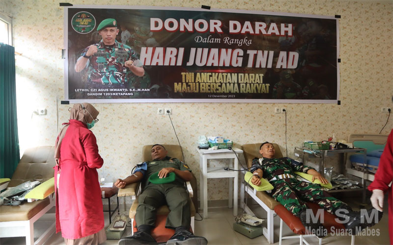 MediaSuaraMabes, Ketapang – Menyambut Hari Juang Tentara Nasional Indonesia TNI Angkatan Darat Ke-78 tahun 2023, Kodim 1203/Ktp menggelar Bakti Sosial (Baksos) berupa donor darah yang bekerja sama dengan pihak RSUD dr. Agoesdjam Ketapang. Selasa (12/12/2023).