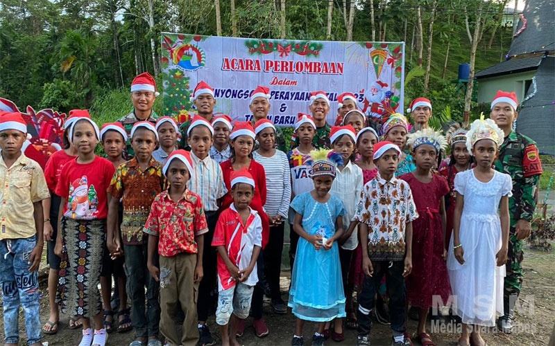 MediaSuaraMabes, Kabupaten Keerom – Menyambut Hari Raya Natal dengan penuh kebahagian, Satuan Tugas Pengaman Perbatasan RI-PNG Sektor Utara, Yonif 122/TS, Pos Wembi Jajaran Kipur D mengadakan lomba Vocal Group dan Menyanyikan lagu Natal, tepatnya di Kampung Wembi, Distrik Mannem, Kabupaten Keerom, Papua. (22/12/2023)