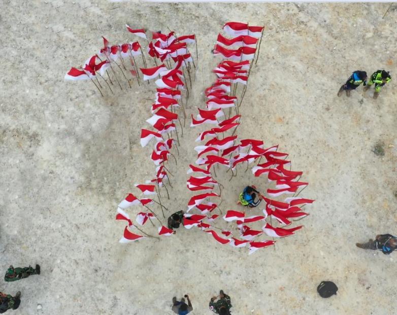 Di Puncak Kobrey, Pangdam beserta rombongan juga melaksanakan pembentangan dan pengibaran bendera merah putih formasi angka 76.