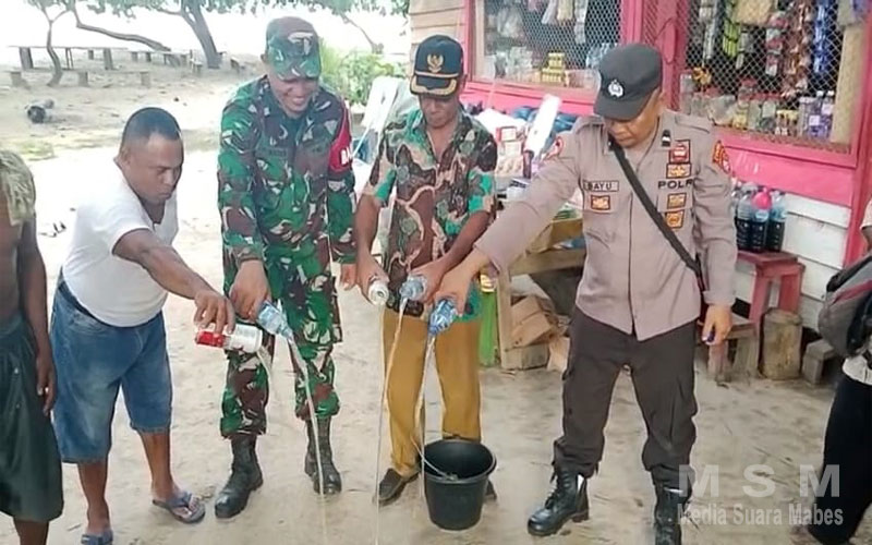 MediaSuaraMabes, Sima ~ Dalam rangka menciptakan suasana yang kondusif di suasana Natal Tahun 2023, Babinsa Koramil 1705-03/Kwatisore ( Serka Fauzi Naser ) bersama Bhabinkamtibmas Aipda Bayu serta Aparat Desa melaksanakan kegiatan swiping minuman keras dalam rangka mengantisipasi hari perayaan Natal bertempat di kampung Sima Distrik Yaur Kabupaten Nabire.